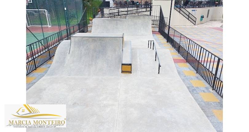 O condomínio oferece uma infraestrutura completa, tipo clube, com piscinas adulto e infantil climatizadas, quadra poliesportiva, campo society, pista de skate profissional, sauna com luz infravermelha, sala de ginástica, sala de jogos, salão de festas equipado com cadeiras, mesas e churrasqueira, TV de 50 polegadas, playground, espaço pet e ainda um mini mercado.